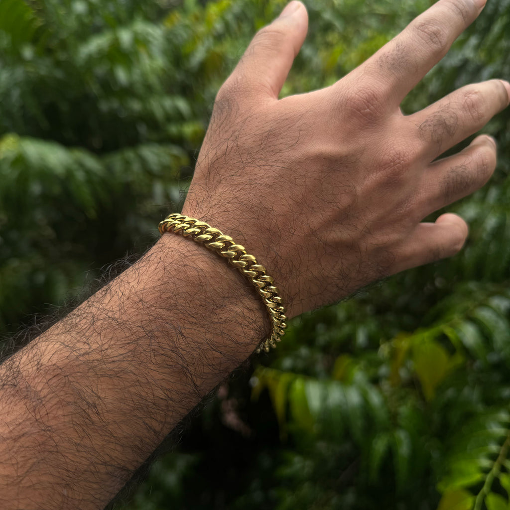 The classic, redefined. The Cuban Bracelet brings bold 8mm links dipped in 18K Gold, delivering a clean, confident edge to any fit. Wear it solo or stack it — it hits either way. Waterproof, anti-tarnish, and locked with our snap-proof clasp, this piece is built to shine through every move you make.