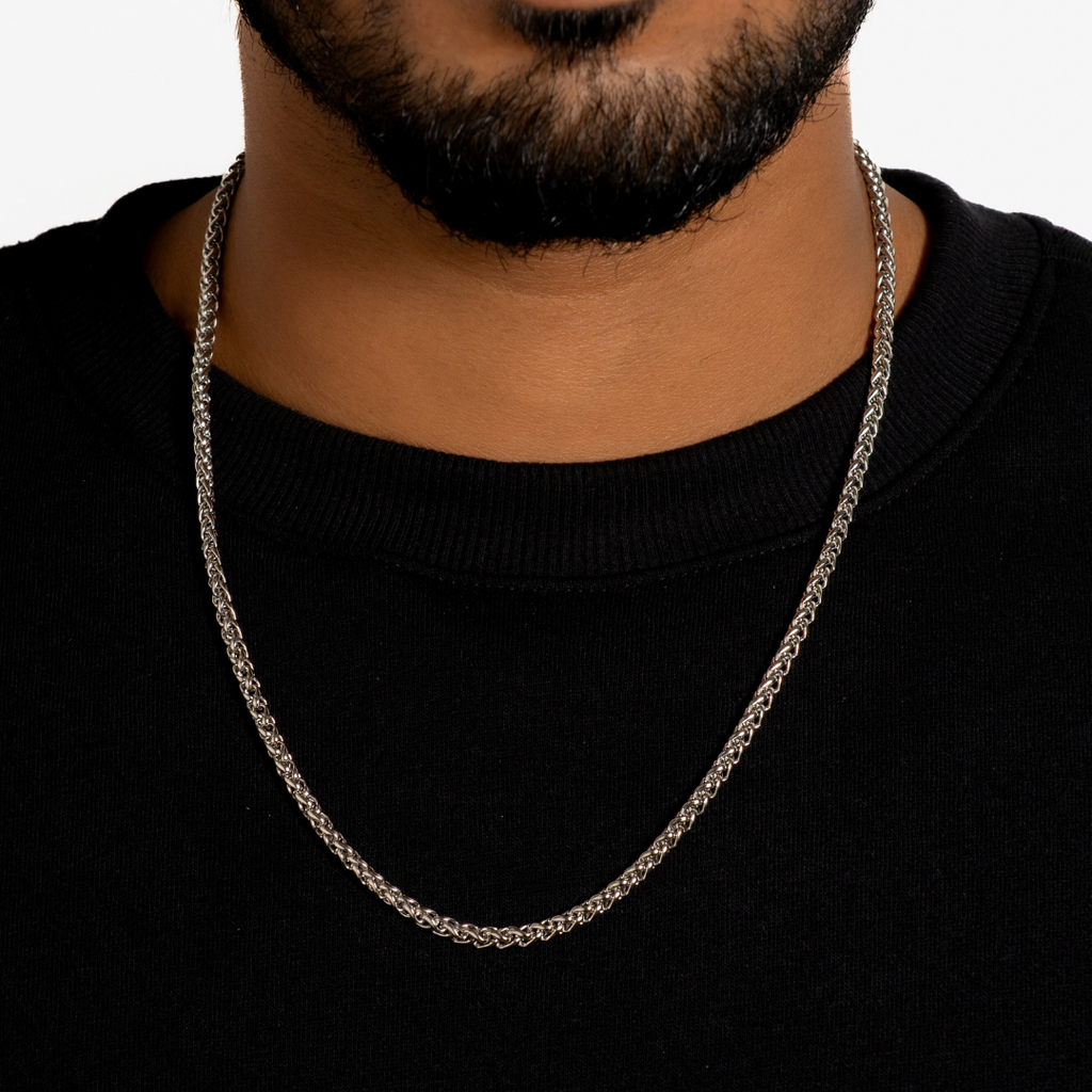 The Wheat Chain (Silver) blends classic craftsmanship with a sleek, modern aesthetic, featuring an intricate weave that symbolizes resilience. Perfect for both everyday wear and special occasions, this versatile piece adds a subtle touch of sophistication to any outfit. Made from durable materials, it resists tarnishing and maintains its shine through all your journeys.